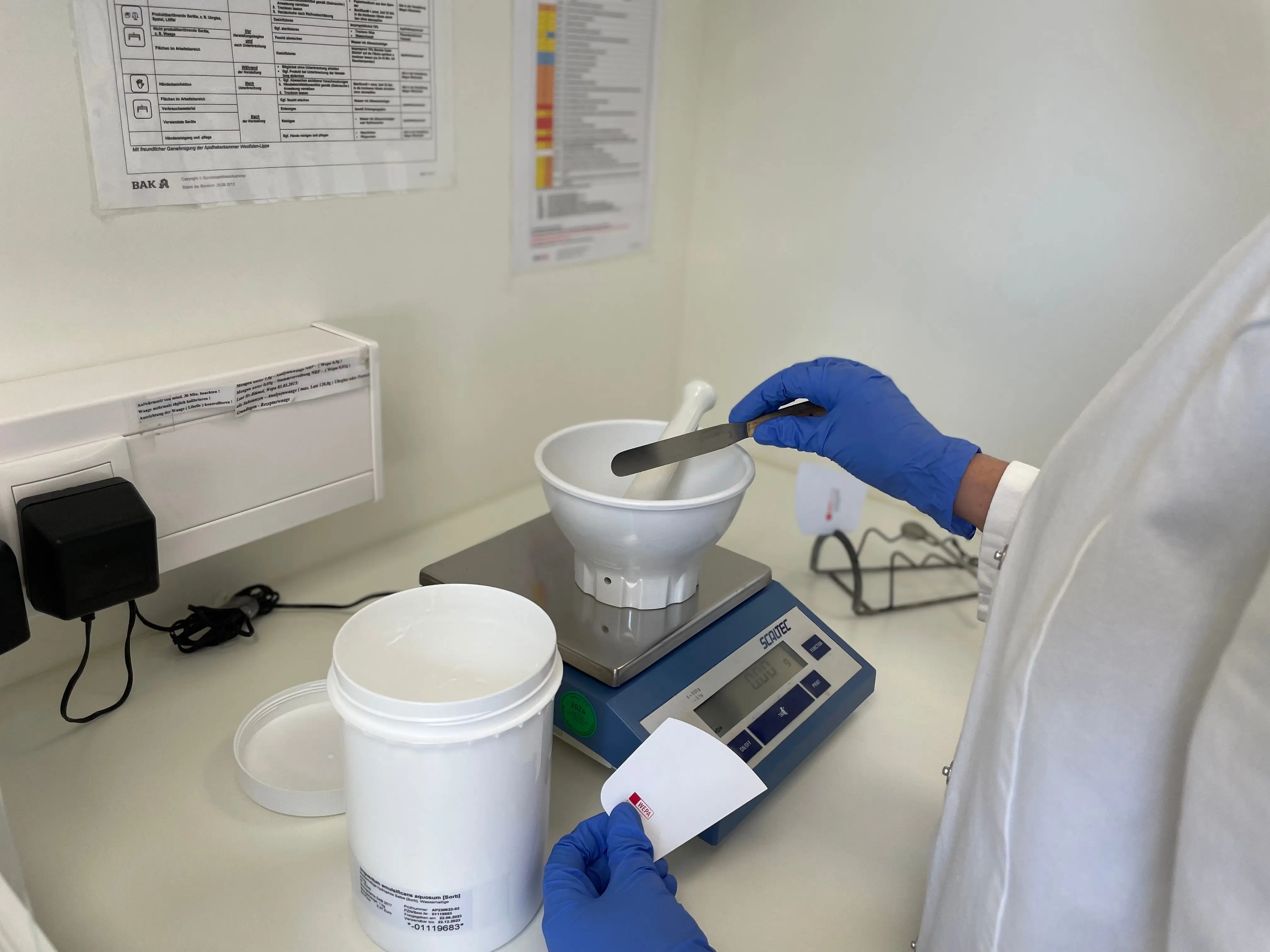 In unserer Rezeptur stellen wir nach Ihren Wünschen oder nach ärztlichen Verordnungen Salben, Tinkturen, Kapseln oder auch Deos her.